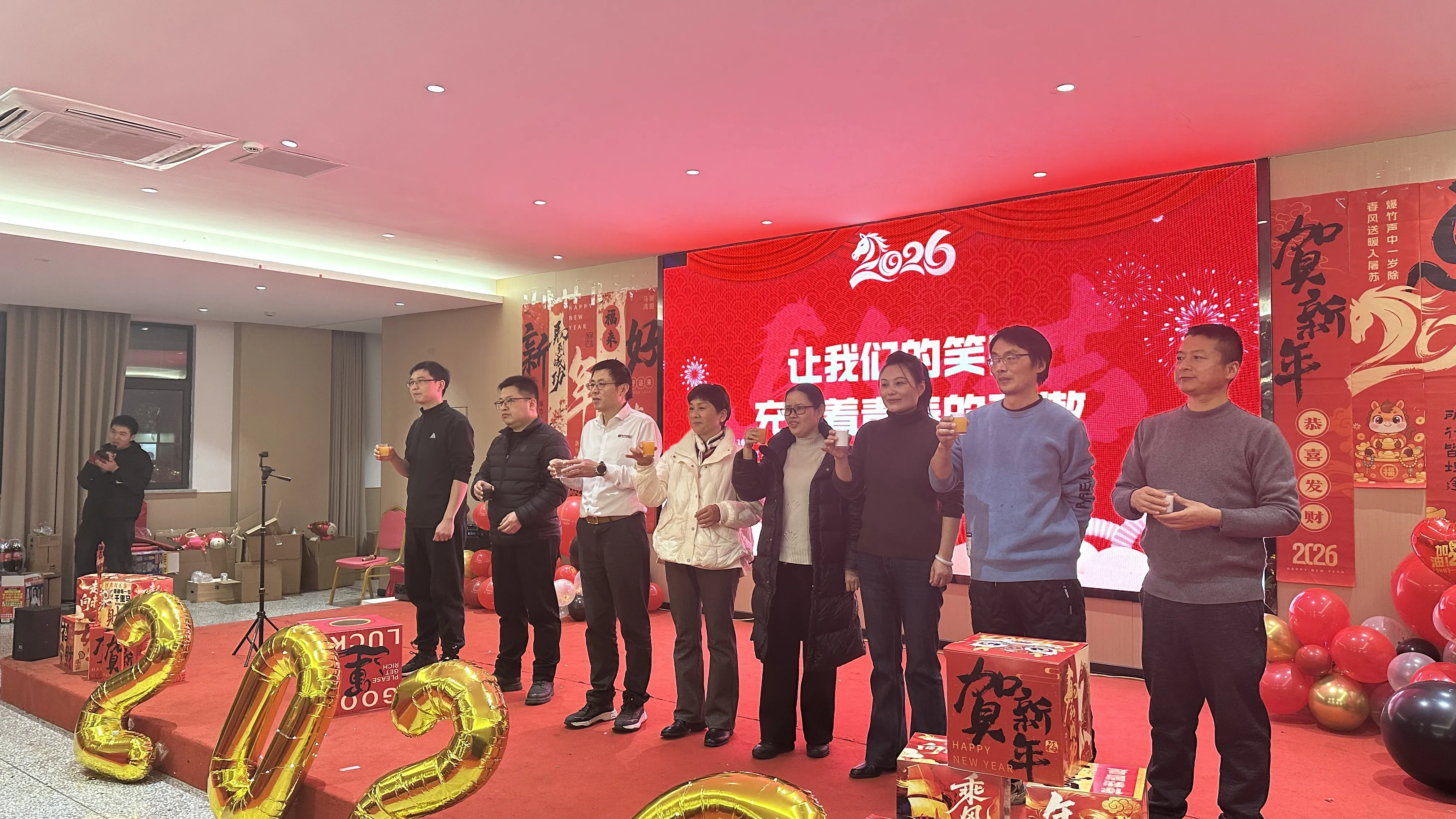 Company leaders took the stage to reflect on WREN Hydraulics' breakthroughs and achievements in the hydraulic field during 2025, expressing gratitude for the wholehearted dedication of all employees. They also outlined clear development goals for 2026, encouraging everyone to seize the opportunity of the Year of the Horse to spur forward with determination and practical action, jointly building new corporate glory. At the conclusion of the address, leaders raised their glasses in a toast, officially kicking off the toasting segment.